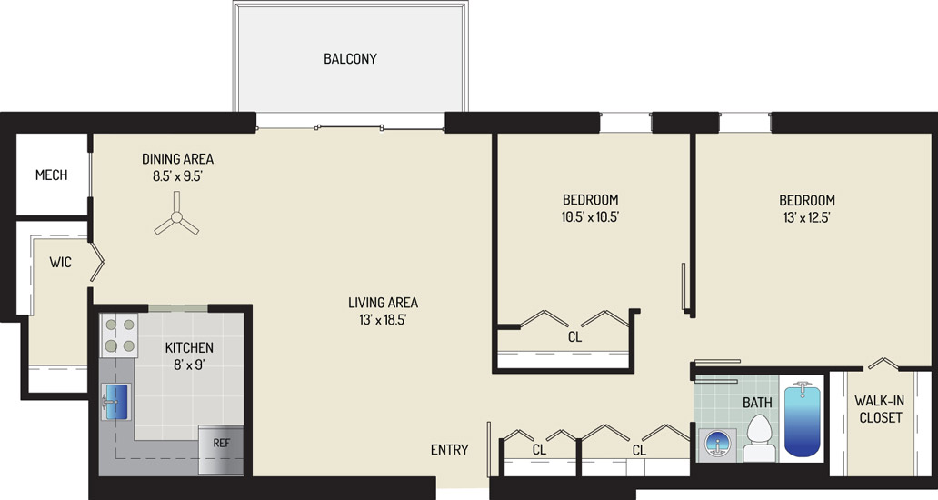 3 Bedrooms + 1.5 Baths